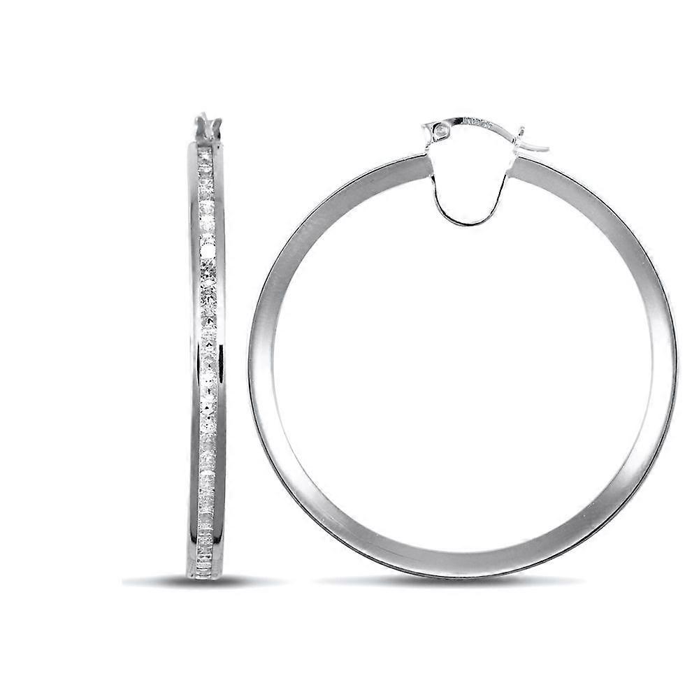 Jewelco London Ladies 9ct White Gold White Round Brilliant Cubic Zirconia Eternity 4mm Hoop Earrings 47mm
