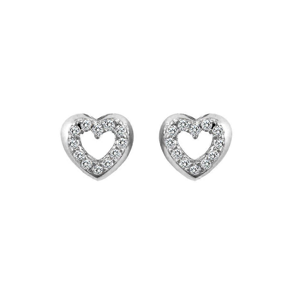 Jewelco London Ladies 9ct White Gold White Round Brilliant Cubic Zirconia Love Heart Stud Earrings