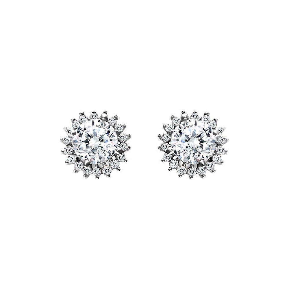 Jewelco London Ladies 9ct White Gold White Round Brilliant Cubic Zirconia Round Cluster Stud Earrings