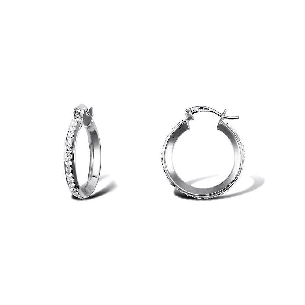 Jewelco London Ladies 9ct White Gold White Round Crystal Eternity 3mm Hoop Earrings 21mm