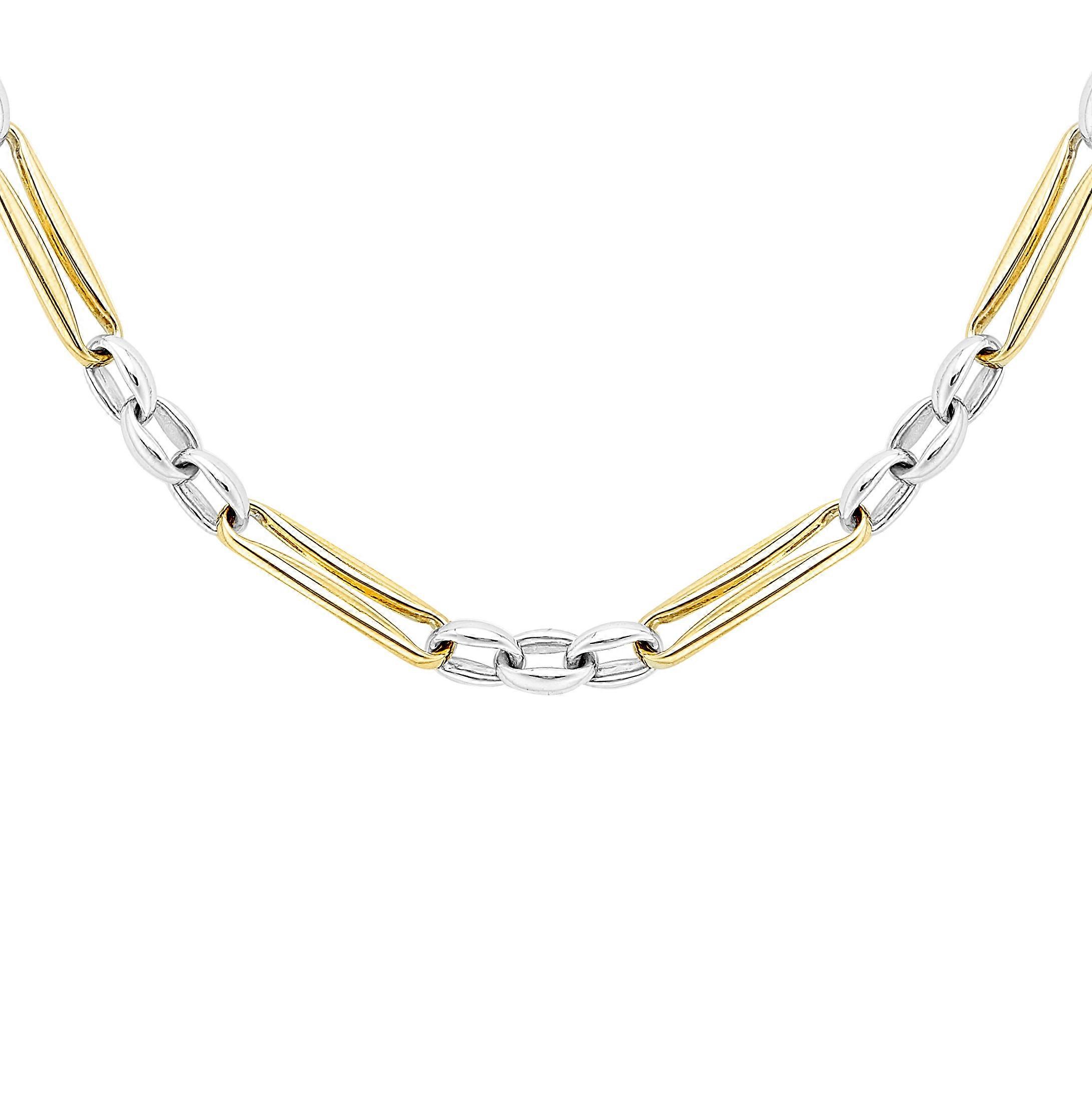 Jewelco London Ladies 9ct White & Yellow Gold Stretched Elongated Pinched Figaro Style Chain Necklace 4mm 18"/45cm