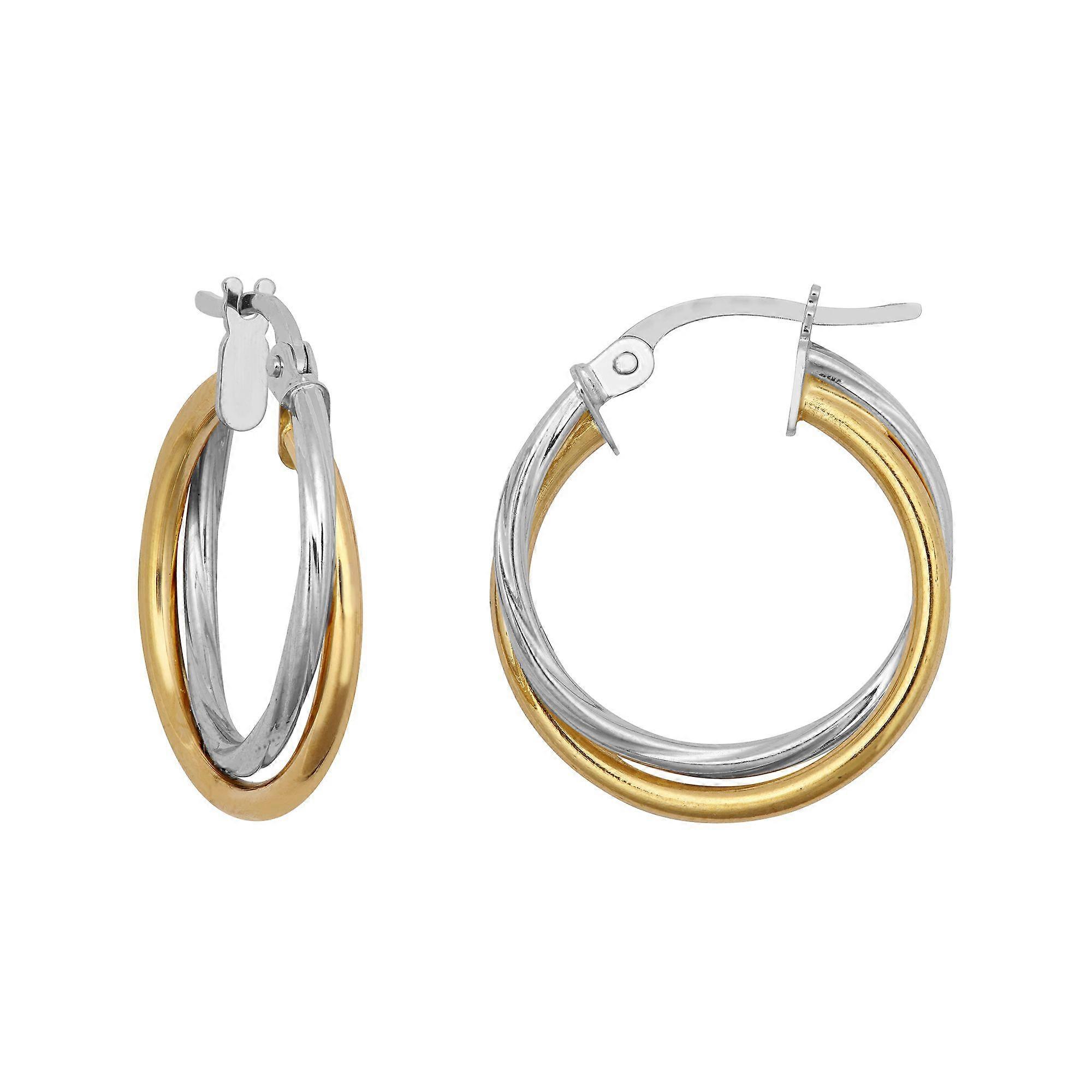 Jewelco London Ladies 9ct Yellow and White Gold Plain Twisted Double Interlocked 1.5mm Hoop Earrings 21mm