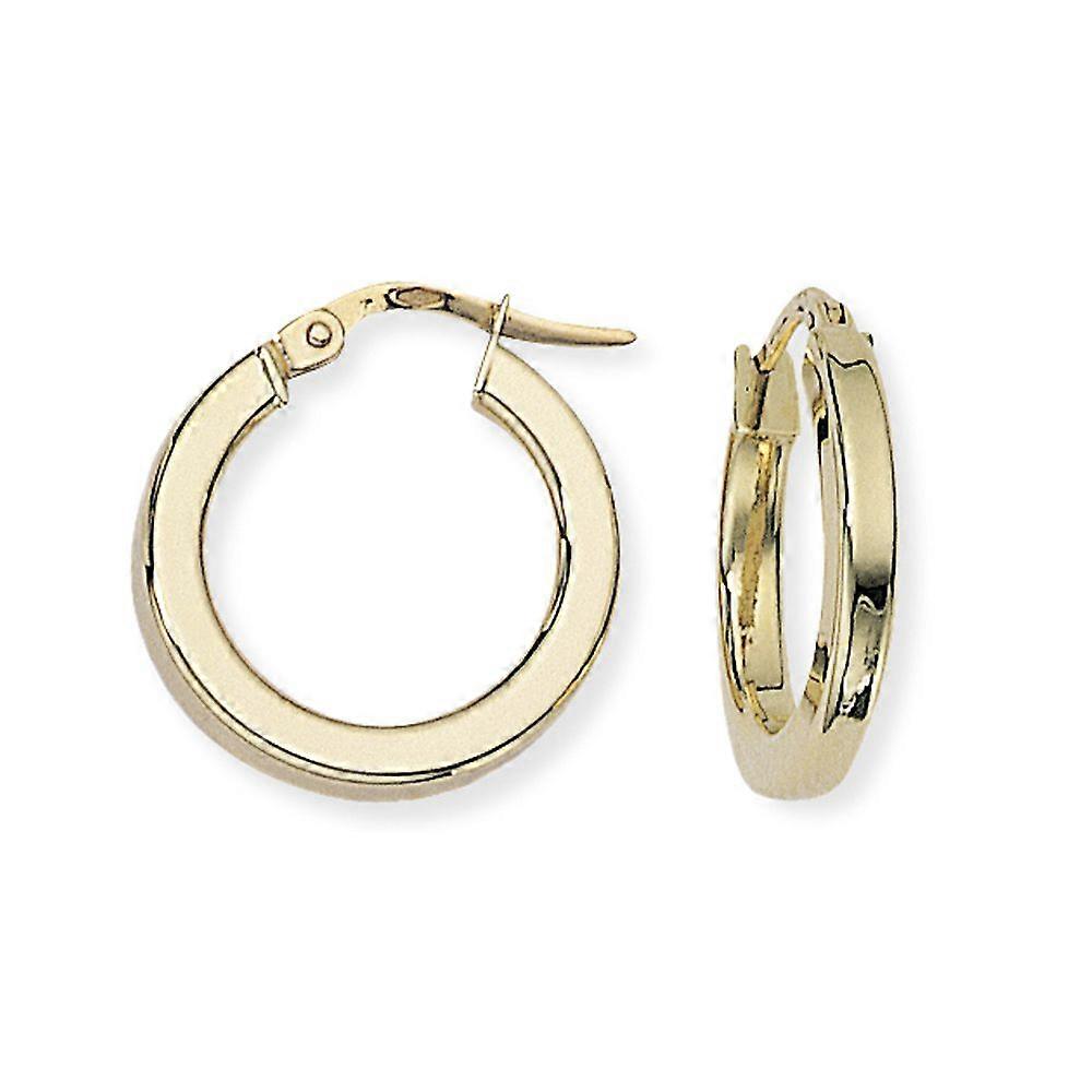 Jewelco London Ladies 9ct Yellow Gold 2.5mm Gauge Square Tube Round Hoop Earrings - 17mm