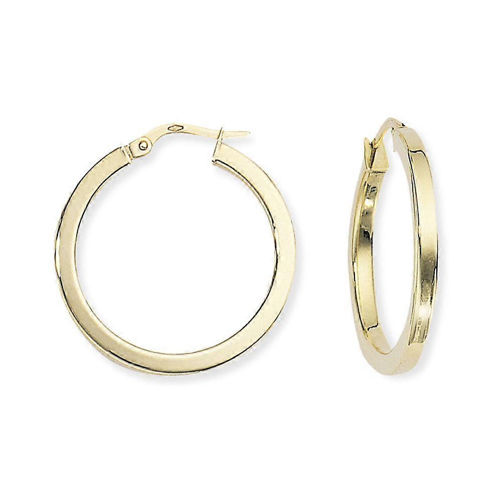 Jewelco London Ladies 9ct Yellow Gold 2.5mm Gauge Square Tube Round Hoop Earrings - 25mm