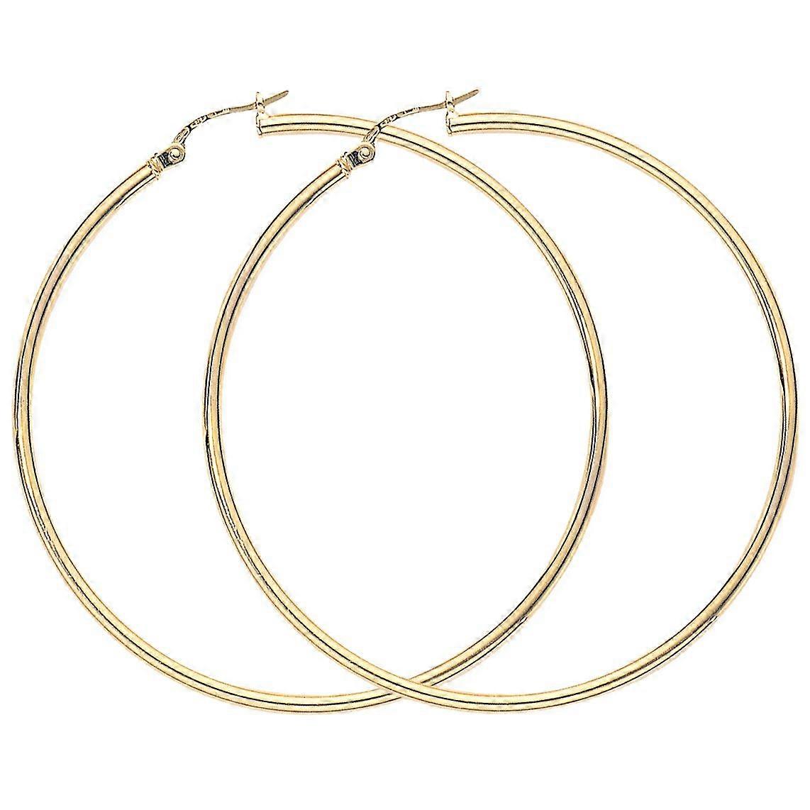 Jewelco London Ladies 9ct Yellow Gold 2mm Gauge Thin Light Hoop Earrings - 52mm