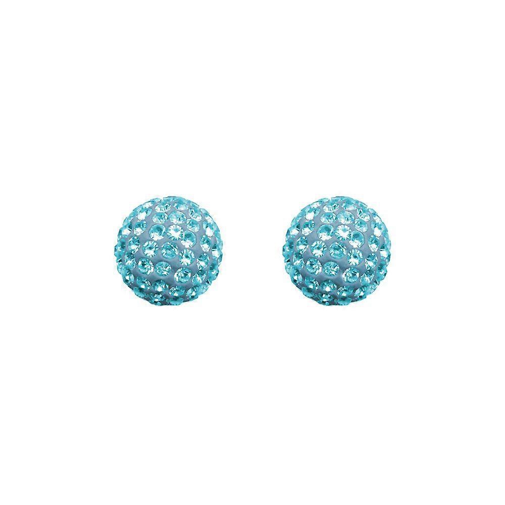 Jewelco London Ladies 9ct Yellow Gold Aqua Blue Round Crystal Disco Ball Stud Earrings, 8mm