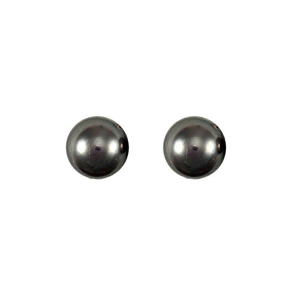 Jewelco London Ladies 9ct Yellow Gold Black Iridescent Peacock Green Seawater Cultured Akoya Pearl Full Moon Stud Earrings 7-7.5mm