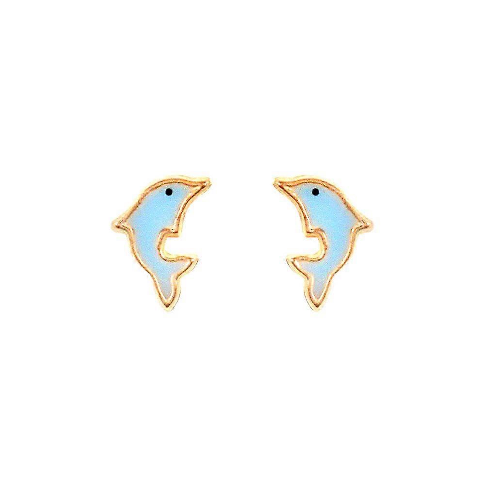 Jewelco London Ladies 9ct Yellow Gold Blue Enamel Dolphin Stud Earrings