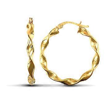Jewelco London Ladies 9ct Yellow Gold Candy Twist 3mm Hoop Earrings 25mm