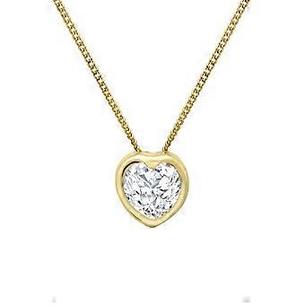 Jewelco London Ladies 9ct Yellow Gold Cubic Zirconia Love Heart Bezel Solitaire Charm Pendant 6mm