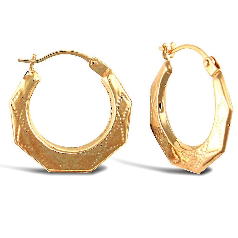 Jewelco London Ladies 9ct Yellow Gold Diamond Pattern Creole Earrings
