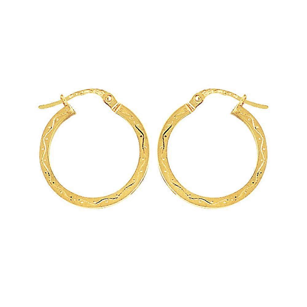Jewelco London Ladies 9ct Yellow Gold Engraved Square Hoop Creole Earrings 20mm