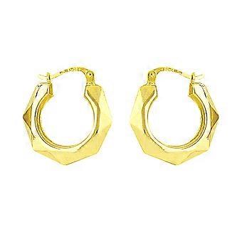 Jewelco London Ladies 9ct Yellow Gold Faceted Octagon Creole Earrings - 20mm
