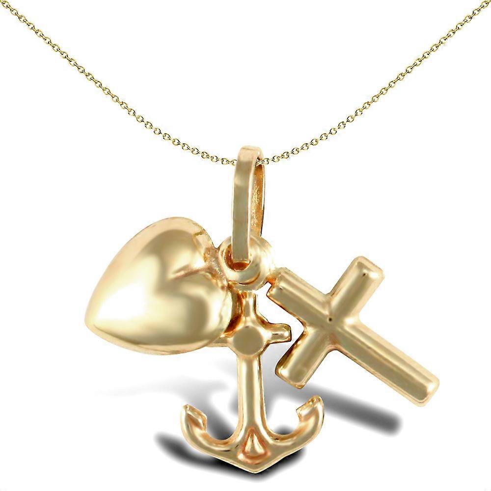 Jewelco London Ladies 9ct Yellow Gold Faith Hope Charity Charm Pendant