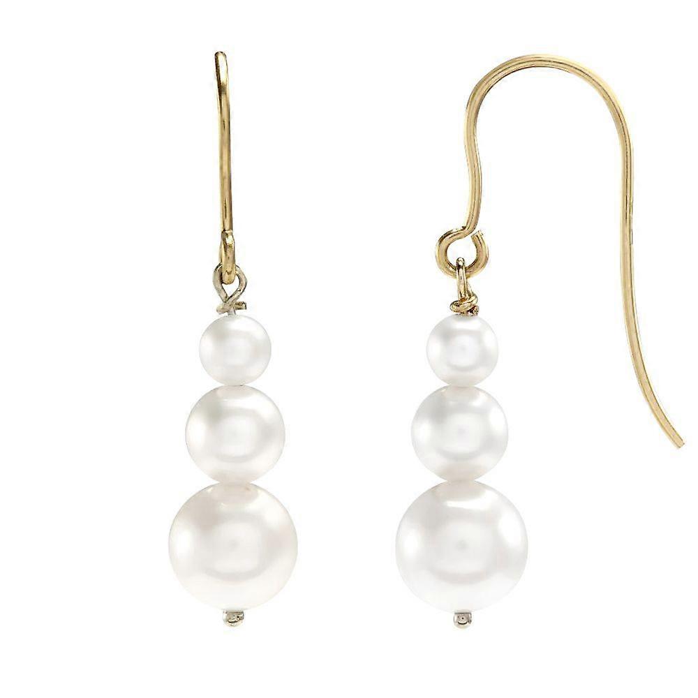 Jewelco London Ladies 9ct Yellow Gold Freshwater Cultured Pearl Snowman Trilogy Easy Hook Drop Earrings 7mm, 30mm