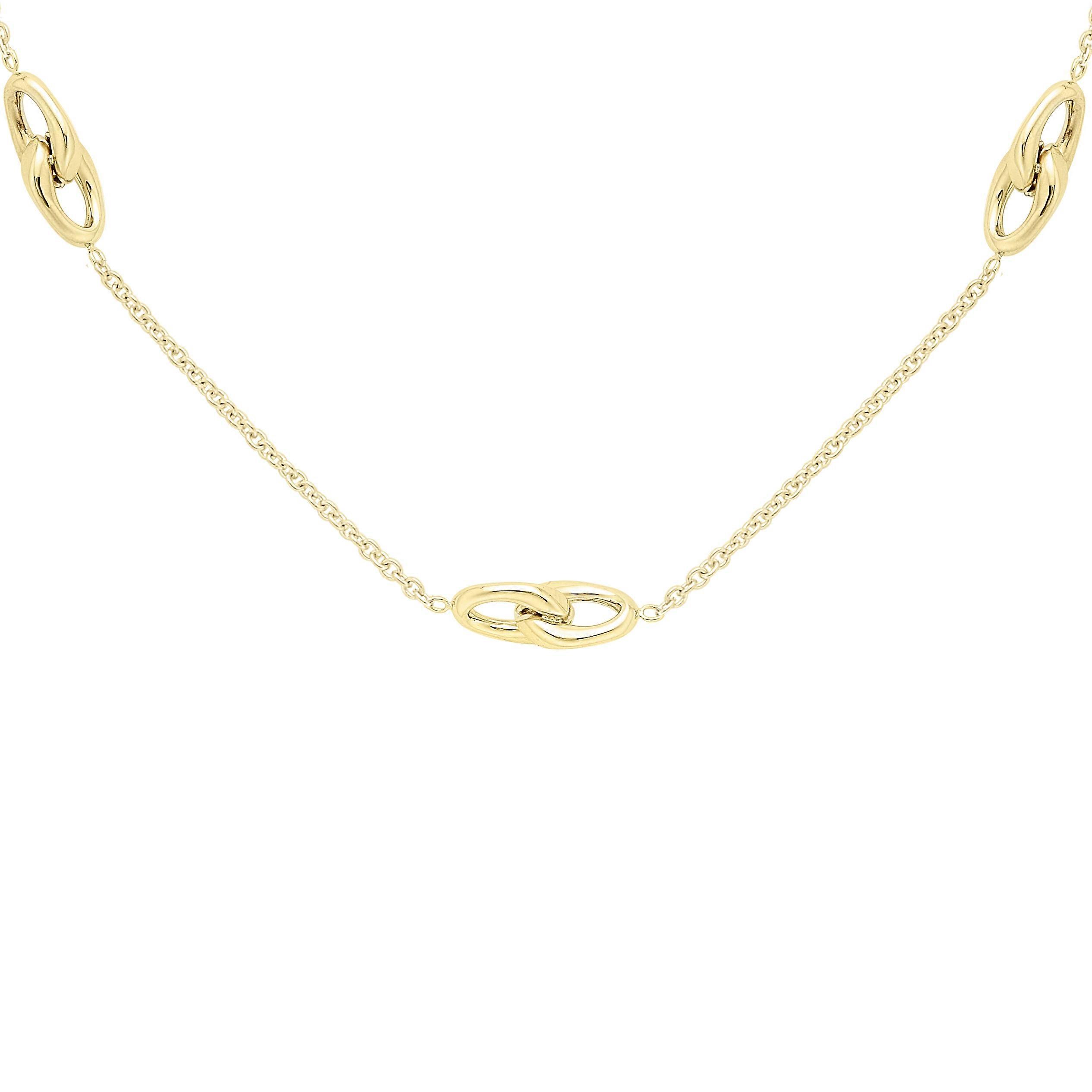Jewelco London Ladies 9ct Yellow Gold Interlocked Holding Claws Motif Station Necklace 0.4mm 18"/45cm
