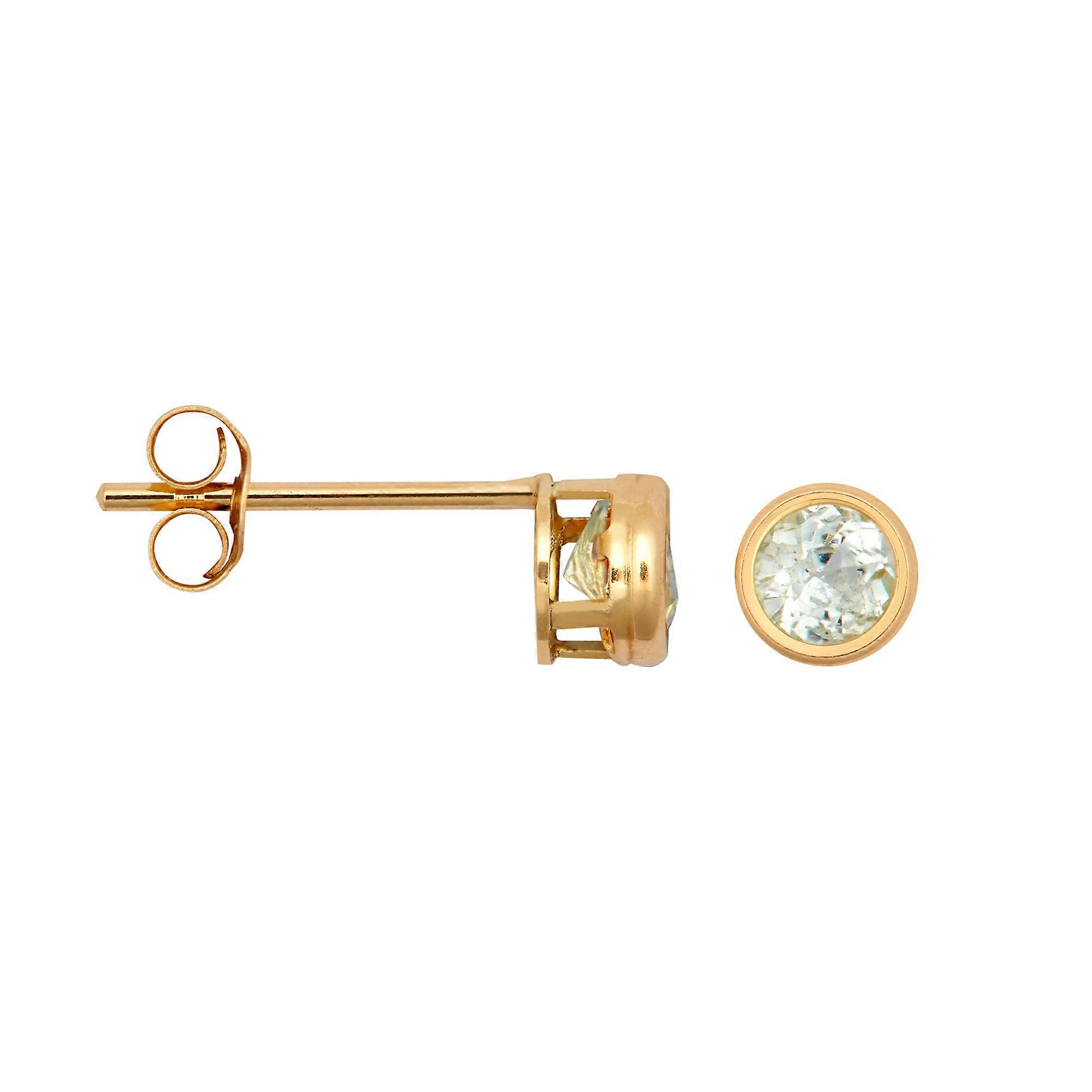 Jewelco London Ladies 9ct Yellow Gold Light Blue Round Topaz Donut Bezel Solitaire Stud Earrings, 3mm
