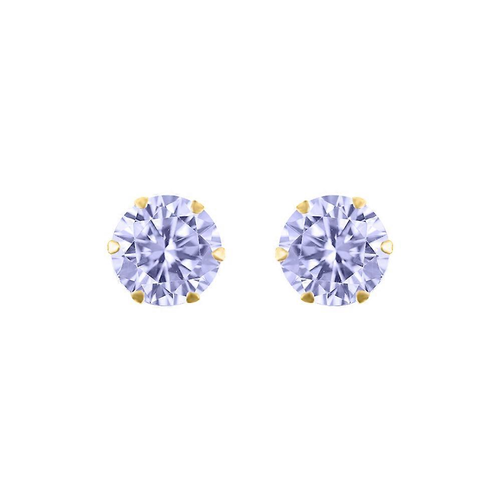 Jewelco London Ladies 9ct Yellow Gold Lilac Round Brilliant Cubic Zirconia Solitaire Claw Set Stud Earrings, 6mm
