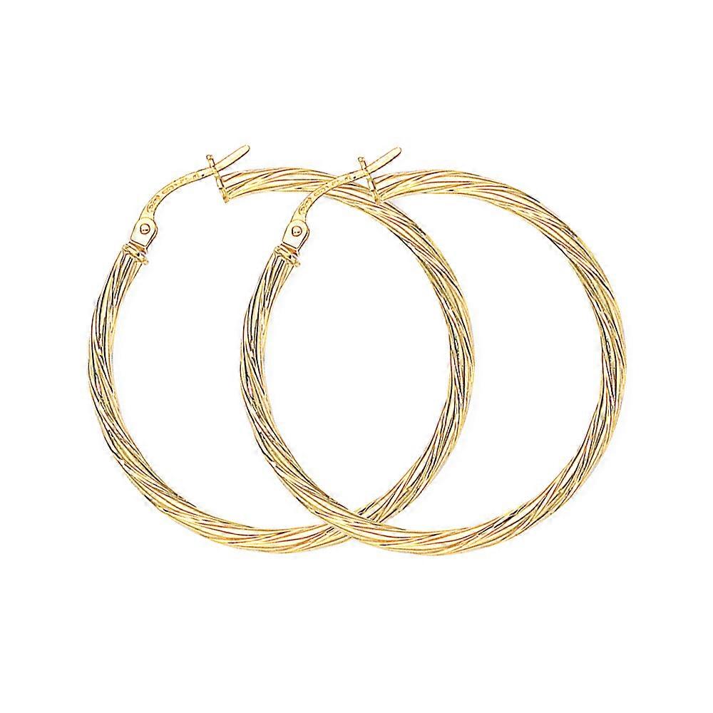 Jewelco London Ladies 9ct Yellow Gold Liquorice Candy Twist Hoop Earrings - 33mm