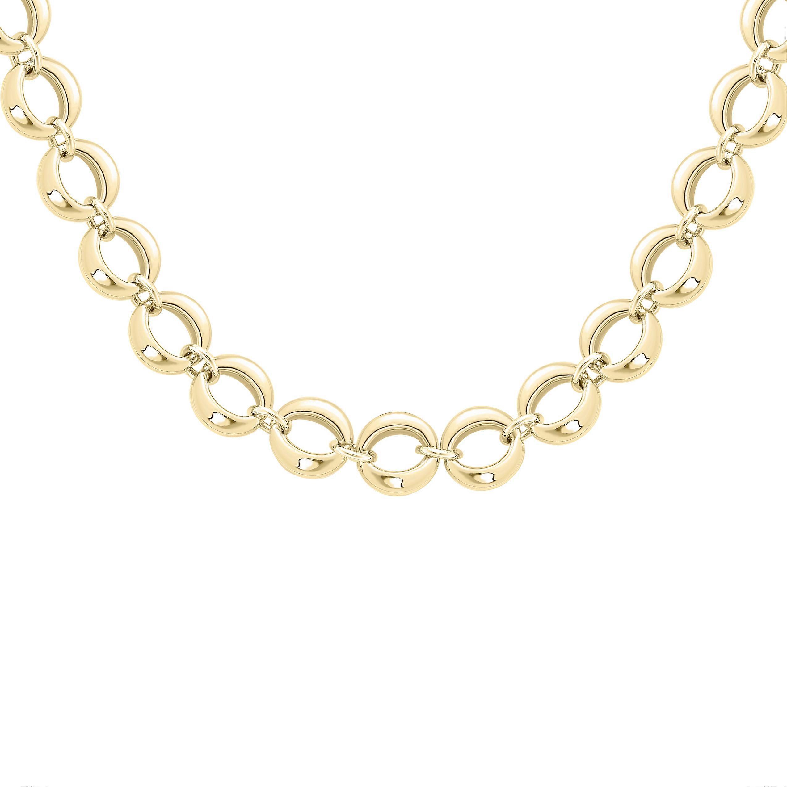 Jewelco London Ladies 9ct Yellow Gold Oval Eyelet Flat Domed Round Link Chain Necklace 8mm 17"/43cm