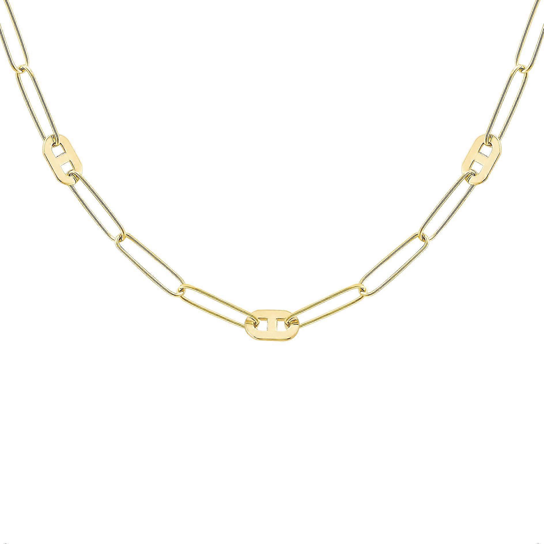 Jewelco London Ladies 9ct Yellow Gold Oval Paperclip Medallion Anchor Link Station Necklace 18"/45cm