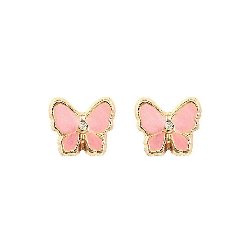 Jewelco London Ladies 9ct Yellow Gold Pink Enamel Butterfly Stud Earrings