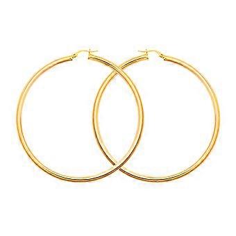Jewelco London Ladies 9ct Yellow Gold Polished 3mm Hoop Earrings 65mm