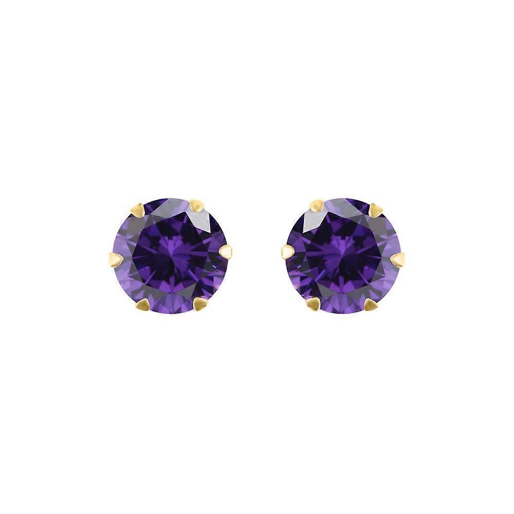 Jewelco London Ladies 9ct Yellow Gold Purple Round Brilliant Cubic Zirconia Solitaire Claw Set Stud Earrings, 6mm
