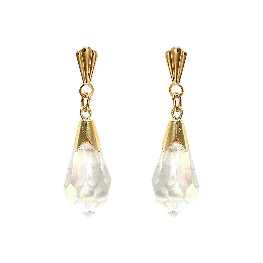 Jewelco London Ladies 9ct Yellow Gold Rainbow Pear Crystal Chandelier Tears of Joy Drop Earrings