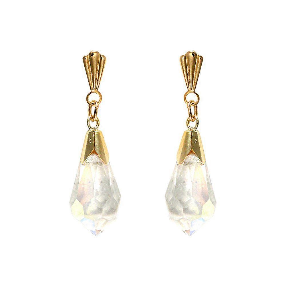 Jewelco London Ladies 9ct Yellow Gold Rainbow Pear Crystal Chandelier Tears of Joy Drop Earrings