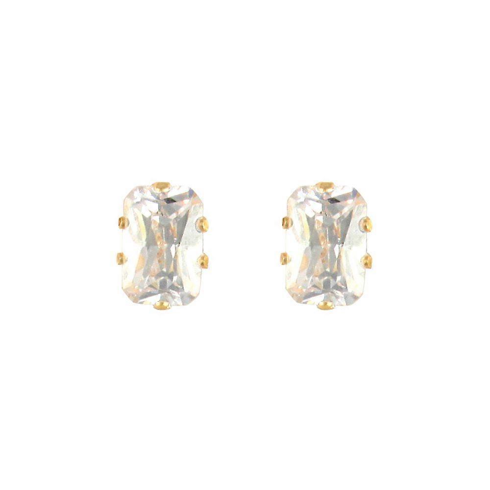 Jewelco London Ladies 9ct Yellow Gold Rectangular Emerald Cut Cubic Zirconia Claw Set Solitaire Stud Earrings, 6x4mm