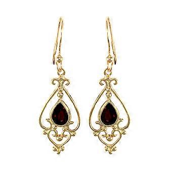 Jewelco London Ladies 9ct Yellow Gold Red Pear Garnet Tears of Joy Chandelier Drop Earrings