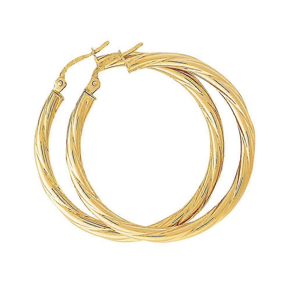 Jewelco London Ladies 9ct Yellow Gold Rock Candy Twist Hoop Earrings - 35mm