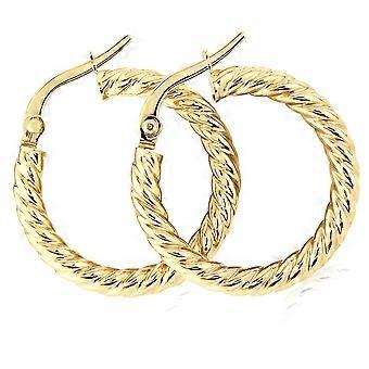 Jewelco London Ladies 9ct Yellow Gold Rope Twisted Round Hoop Earrings - 15mm