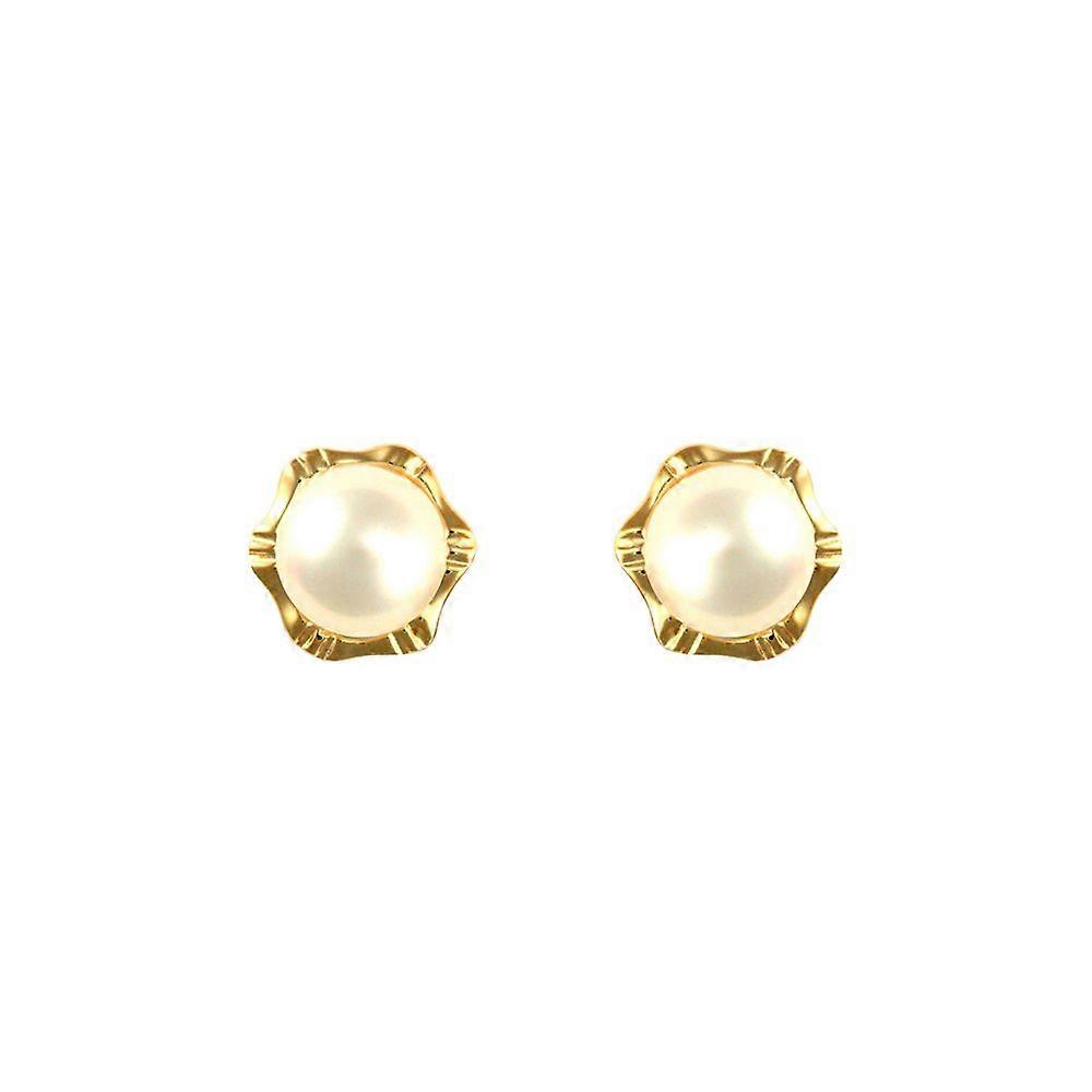 Jewelco London Ladies 9ct Yellow Gold Seawater Cultured Akoya Pearl Flower Stud Earrings 5.5-6mm