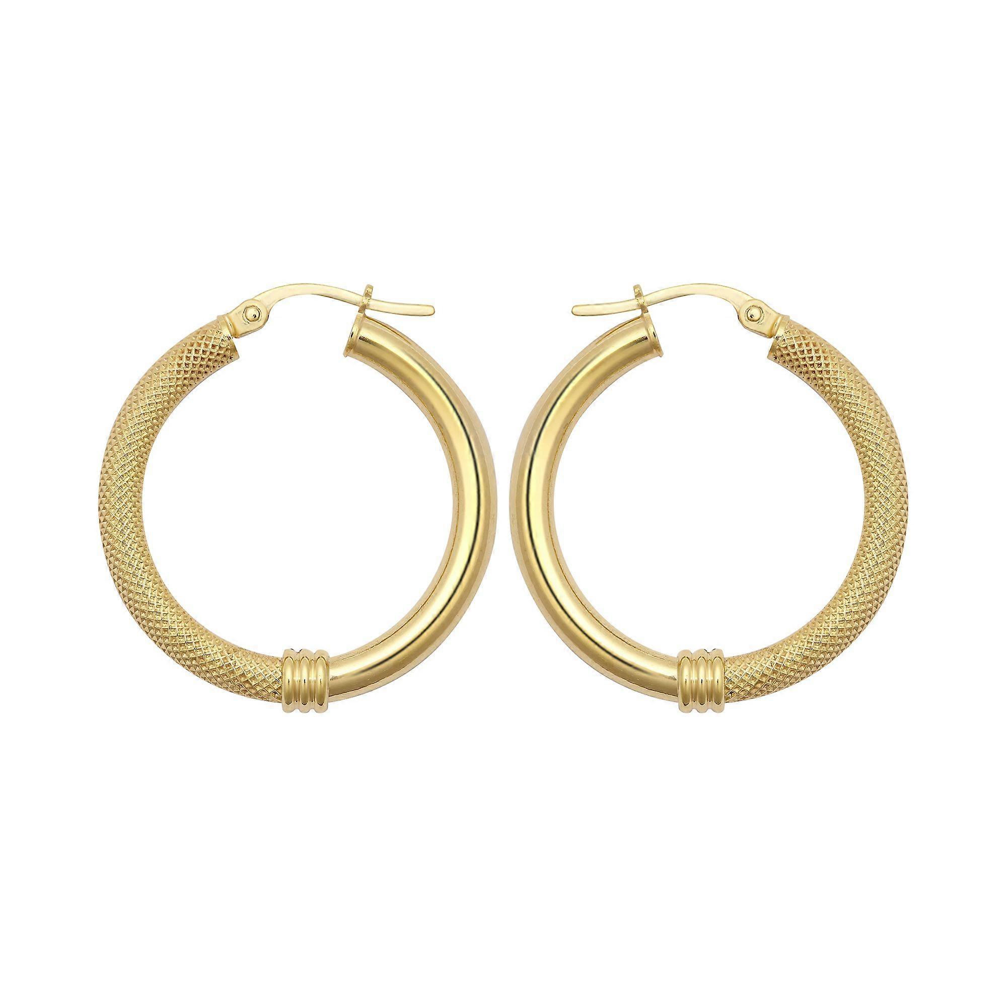 Jewelco London Ladies 9ct Yellow Gold Snake Skin Mesh Collared Styles Clash 3mm Hoop Creole Earrings 26mm