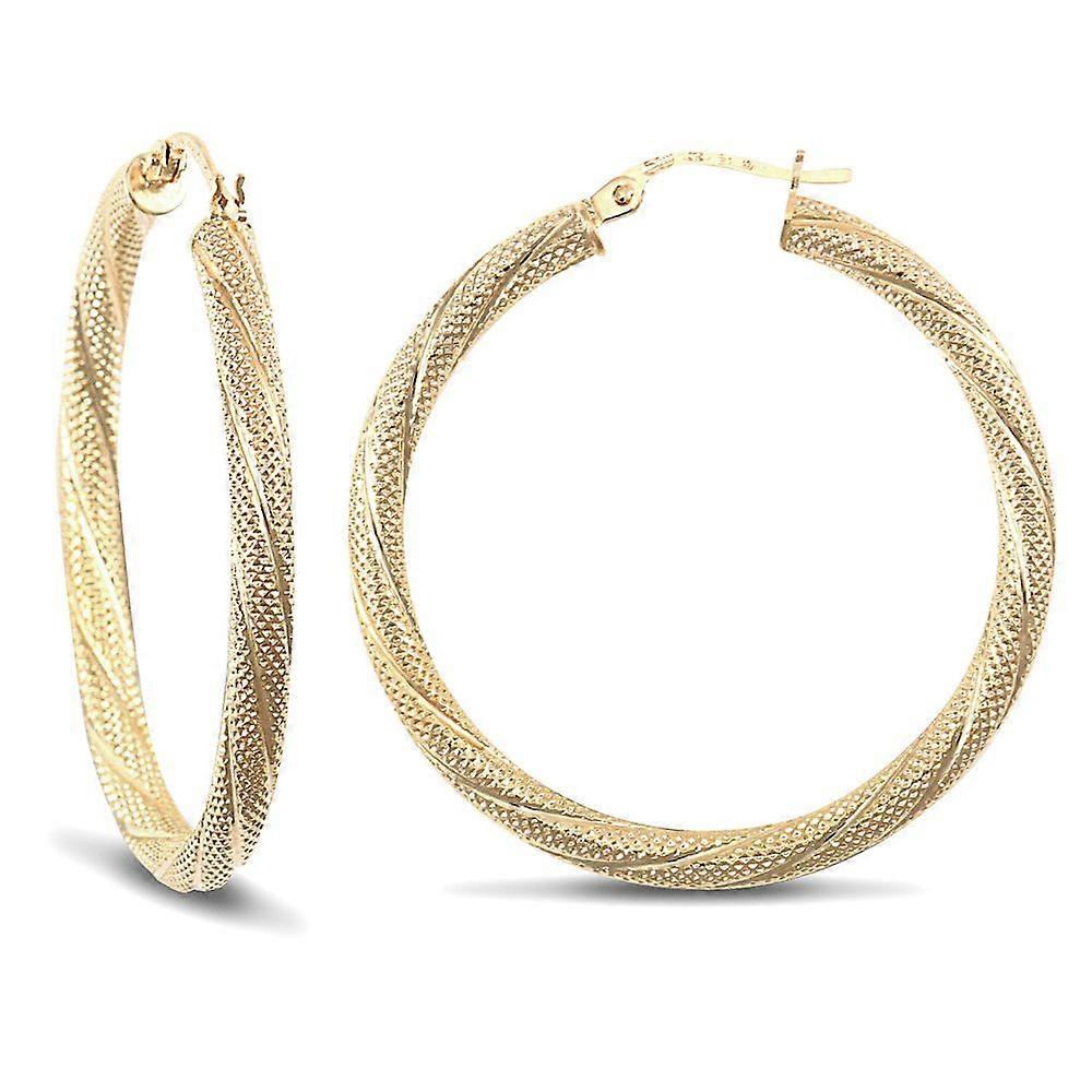 Jewelco London Ladies 9ct Yellow Gold Snake Skin Twisted 3mm Hoop Earrings 35mm