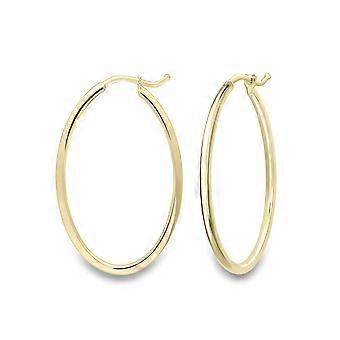Jewelco London Ladies 9ct Yellow Gold Square Tube Oval Hoop Creole Earrings 32mm