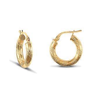 Jewelco London Ladies 9ct Yellow Gold Textured Striped 3mm Hoop Earrings 16mm