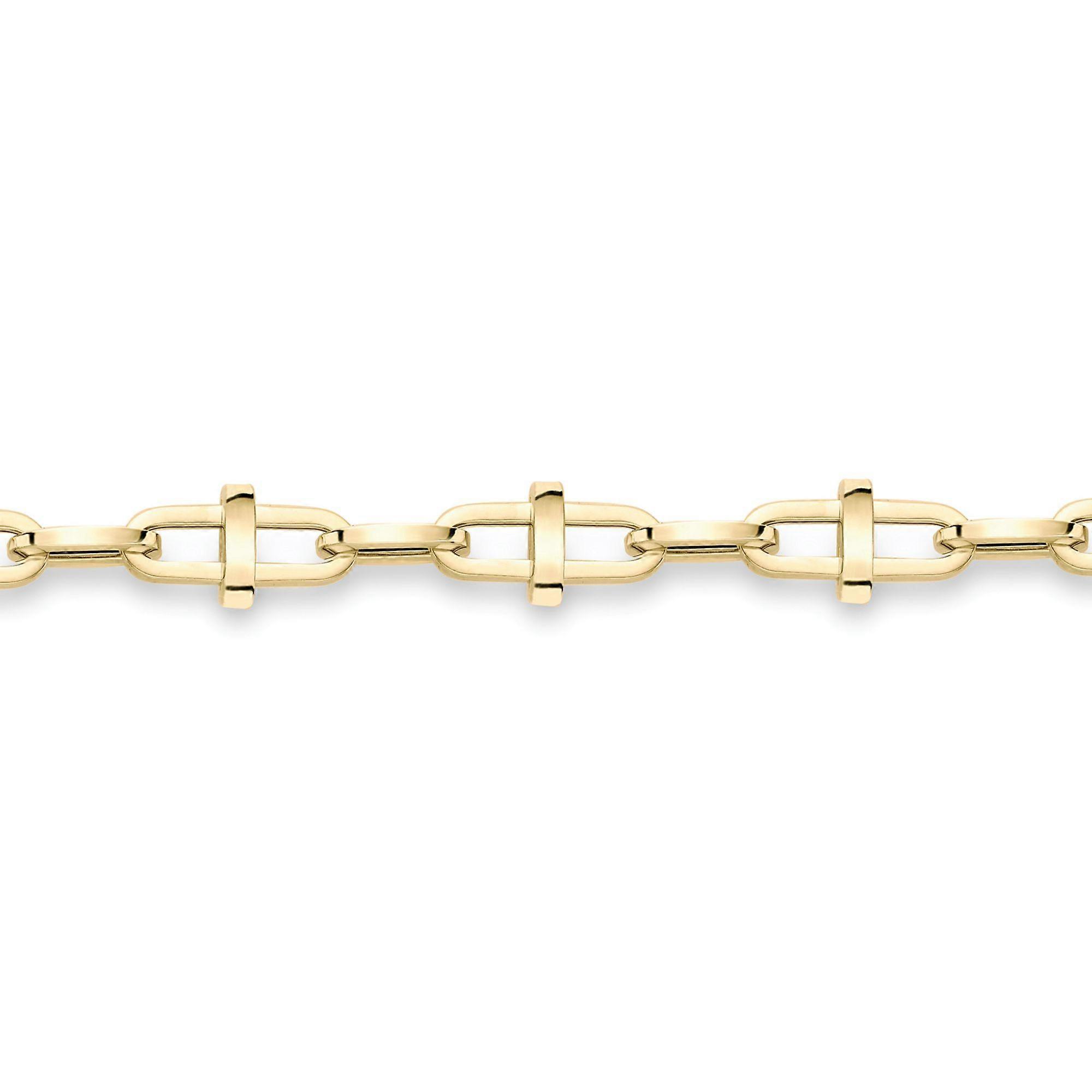 Jewelco London Ladies 9ct Yellow Gold Trombone Anchor Squared Oval Link Chain Bracelet 9.5mm 7.5"/19cm
