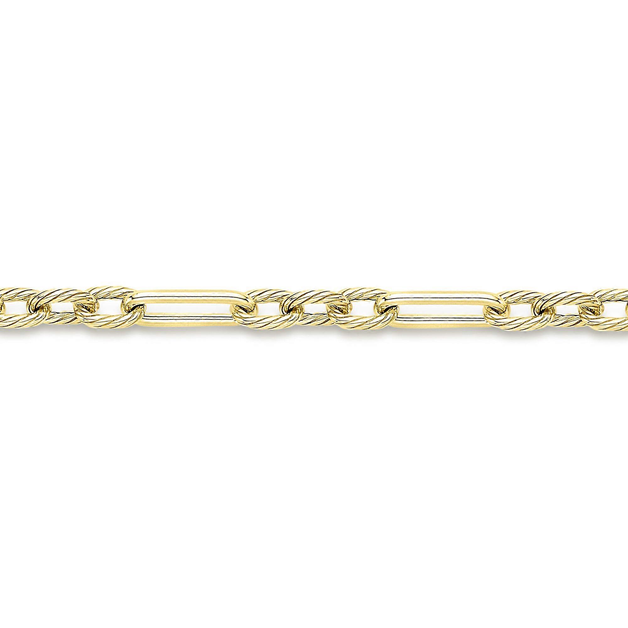 Jewelco London Ladies 9ct Yellow Gold Twist Rope Oval Paperclip Figaro Chain Bracelet 4mm 7.5"/19cm