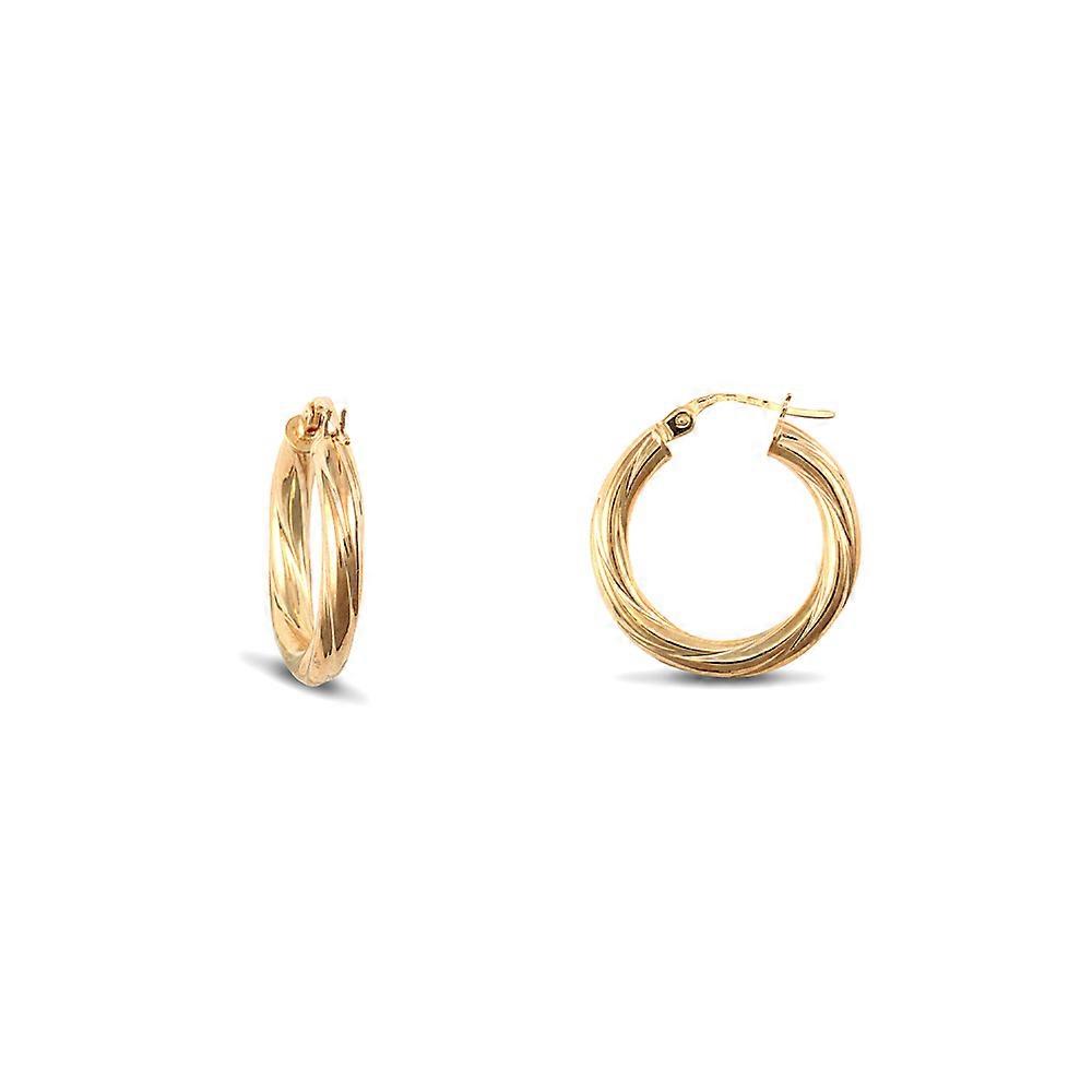Jewelco London Ladies 9ct Yellow Gold Twisted 3mm Hoop Earrings 21mm