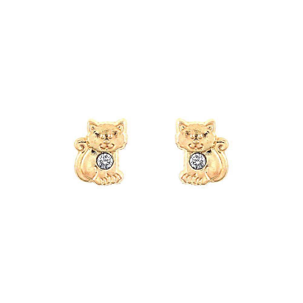 Jewelco London Ladies 9ct Yellow Gold White Round Brilliant Cubic Zirconia Cat Kitten Solitaire Stud Earrings