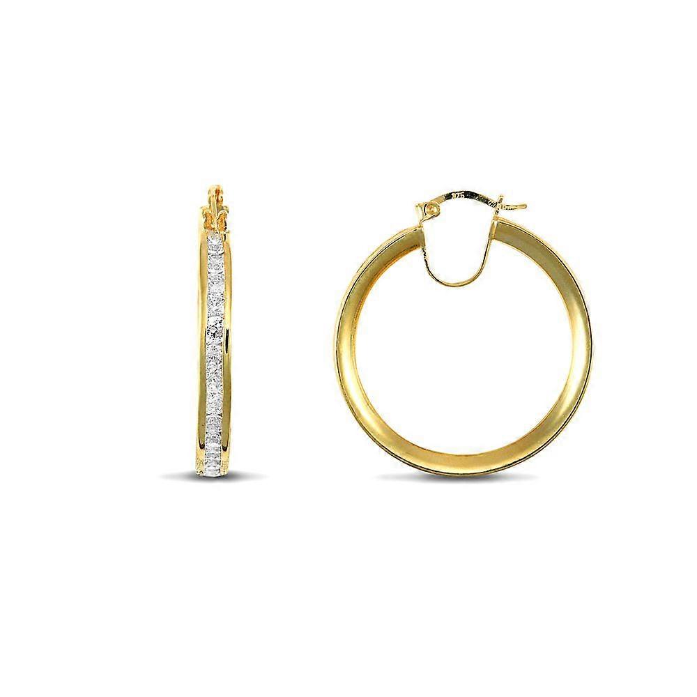 Jewelco London Ladies 9ct Yellow Gold White Round Brilliant Cubic Zirconia Eternity 4mm Hoop Earrings 29mm