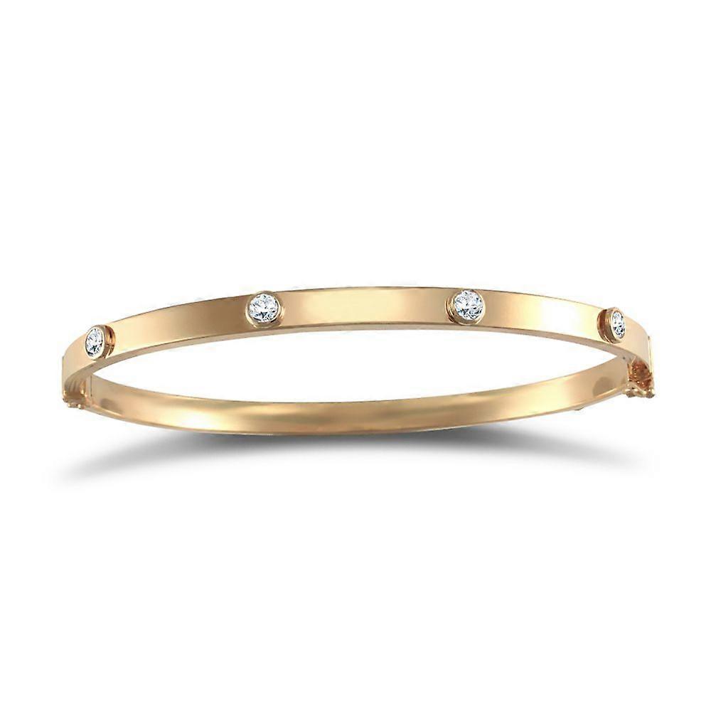 Jewelco London Ladies 9ct Yellow Gold White Round Brilliant Cubic Zirconia Hinged Square Tube Eternity Bangle Bracelet