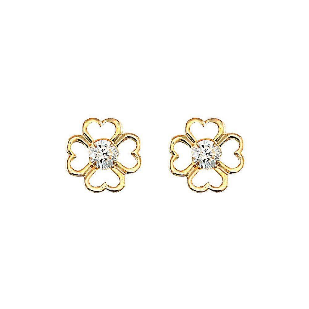 Jewelco London Ladies 9ct Yellow Gold White Round Brilliant Cubic Zirconia Love Heart Cover Flower Petal Stud Earrings