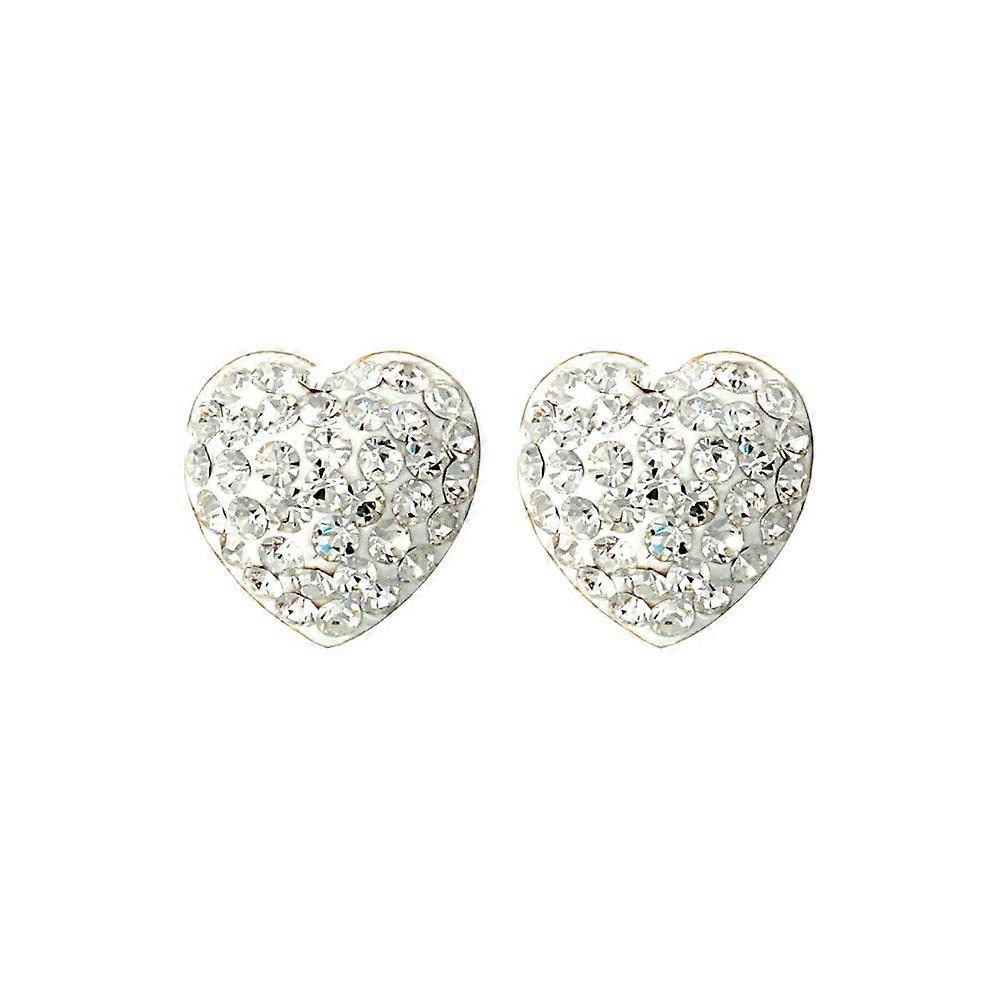 Jewelco London Ladies 9ct Yellow Gold White Round Crystal Disco Love Heart Stud Earrings