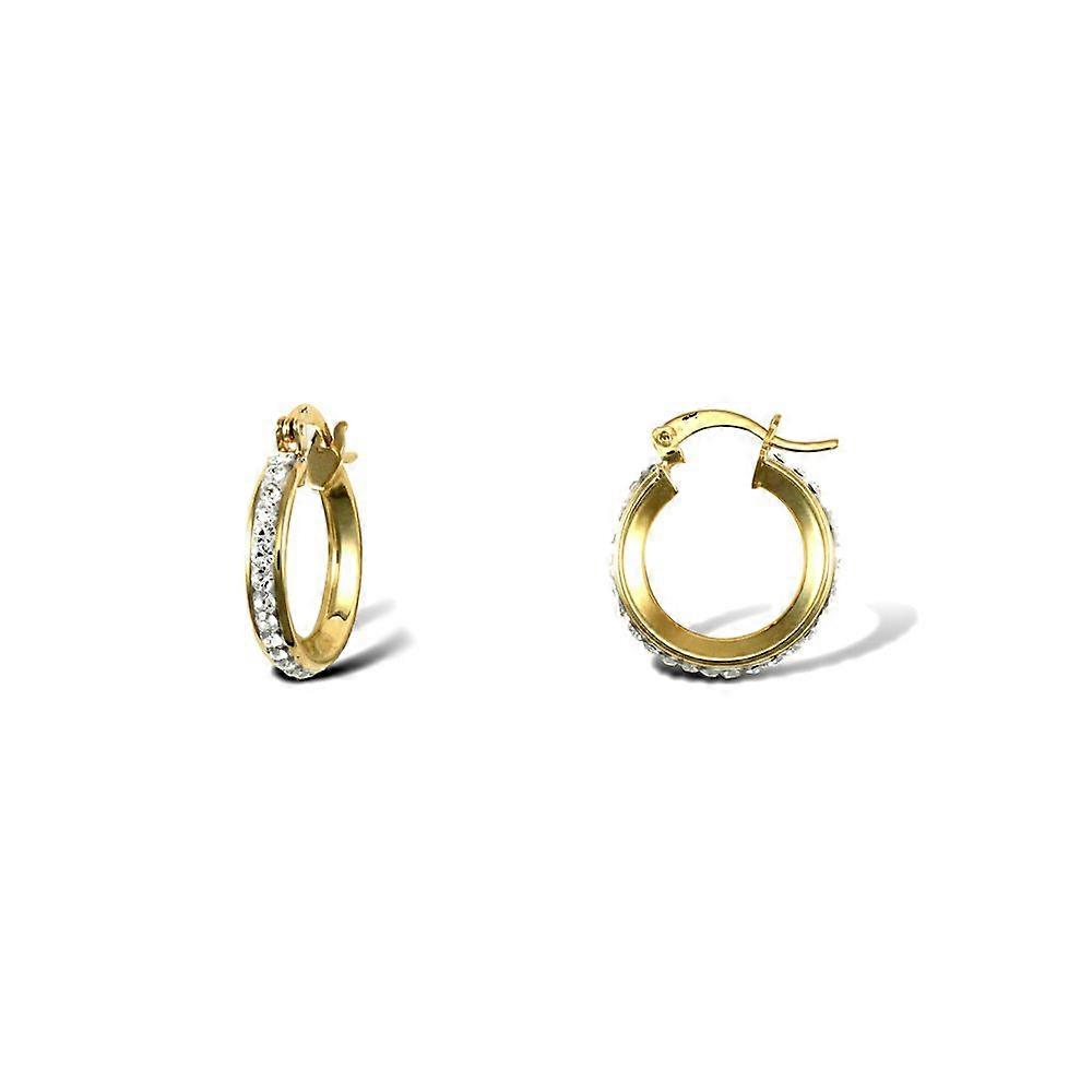 Jewelco London Ladies 9ct Yellow Gold White Round Crystal Eternity 3mm Hoop Earrings 16mm