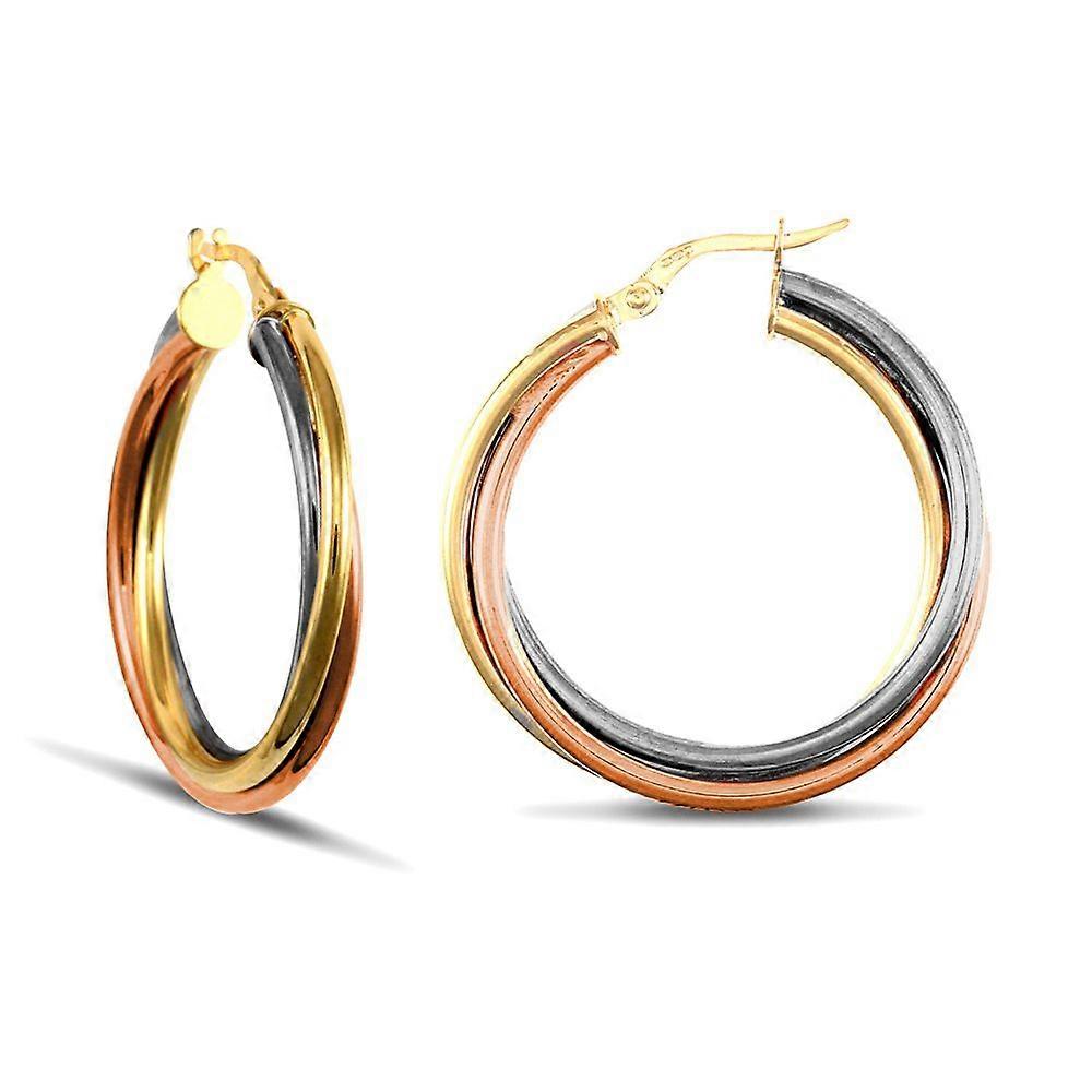 Jewelco London Ladies 9ct Yellow White and Rose Gold Russian Wedding Ring 3mm Hoop Earrings 29mm