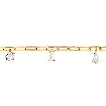 Jewelco London Ladies Gold-Plated Silver Pear Oval CZ Oval Pill Paperclip Hanging Solitaire Charm Bracelet 6 + 2 inch